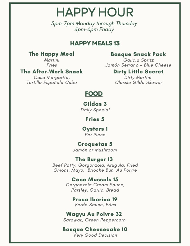 Such a cute spot! The dirty martini with the happy meal fries was to die for. Some of the best tapas as well! The cheesecake was next level. Highly recommend